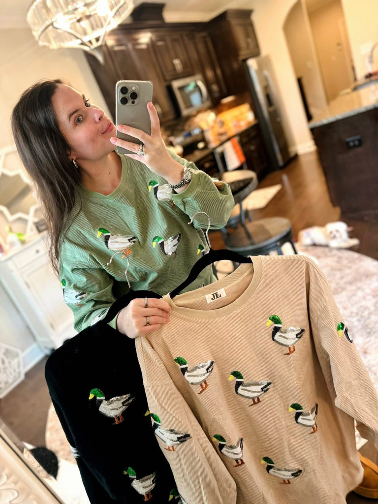 PRE-ORDER - MALLARD DUCK SEQUIN CORDED CREW
