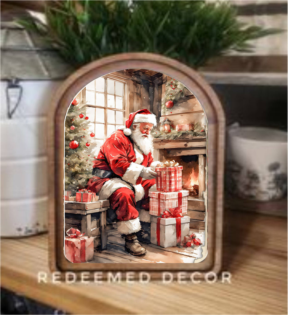 Arch Top Santa With Gifts Framed Art : 6x8"