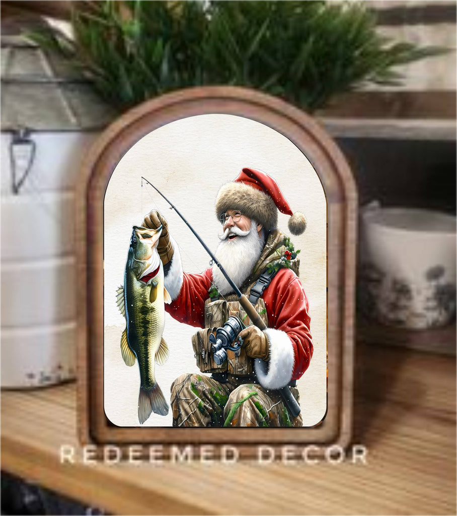 Arch Top Fishing Santa Framed Art : 8.25x11"