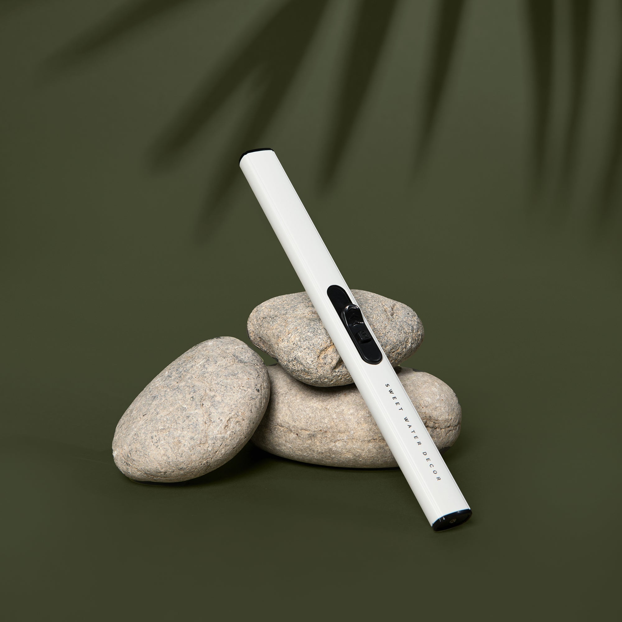Our rechargeable electric lighter is sleek and modern looking, while also being environmentally friendly. The ultra-thin design and sleek winter white finish make this lighter an attractive accessory. In only 1-2 hours, you can fully charge your lighter and it will last for hundreds of uses. Pair it with our signature Sweet Water Decor candles and you have the perfect gift for anyone!